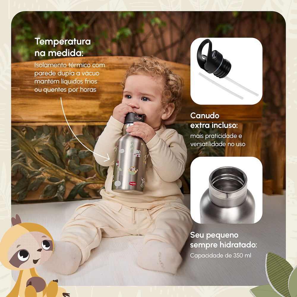 Com capacidade de 350 ml, tampa com alça acoplada e canudo extra incluso, ela acompanha pais e filhos dentro ou fora de casa. Além disso, a impressão 3D exclusiva da linha Boho Chic reforça o vínculo com o universo da marca e traduz o nosso cuidado em criar momentos de familiaridade para as crianças.