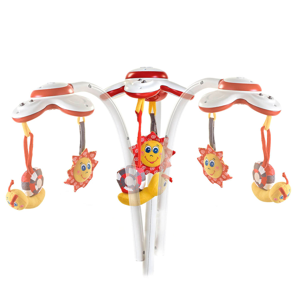 - Entretém e acalma com músicas e luzes no móbile eletrônico