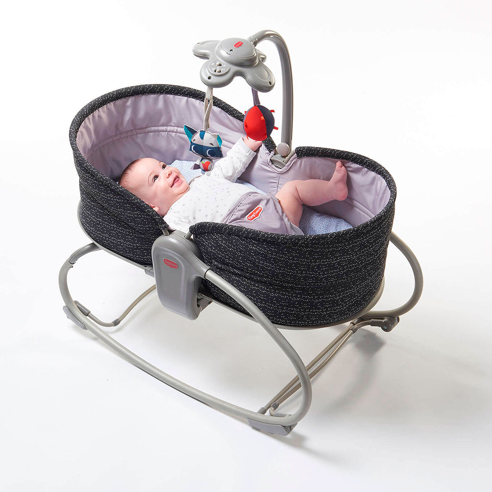 Como cadeirinha, o 3 em 1 Rocker Napper da Tiny Love acomoda confortavelmente o bebê enquanto ele brinca e interage. E o bouncer se tranforma rapidamente em moisés para uma soneca tranquila: a almofada plana com laterais elevadas oferece um ambiente seguro e aconchegante.