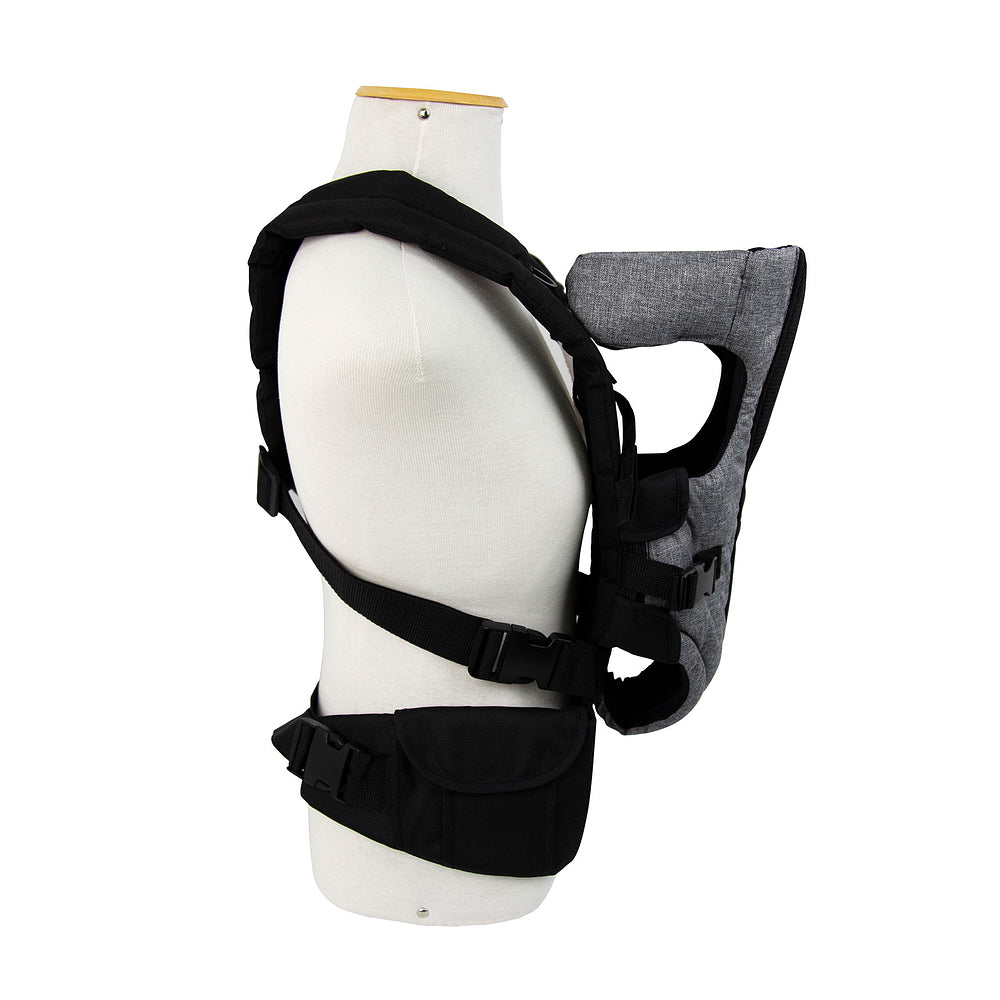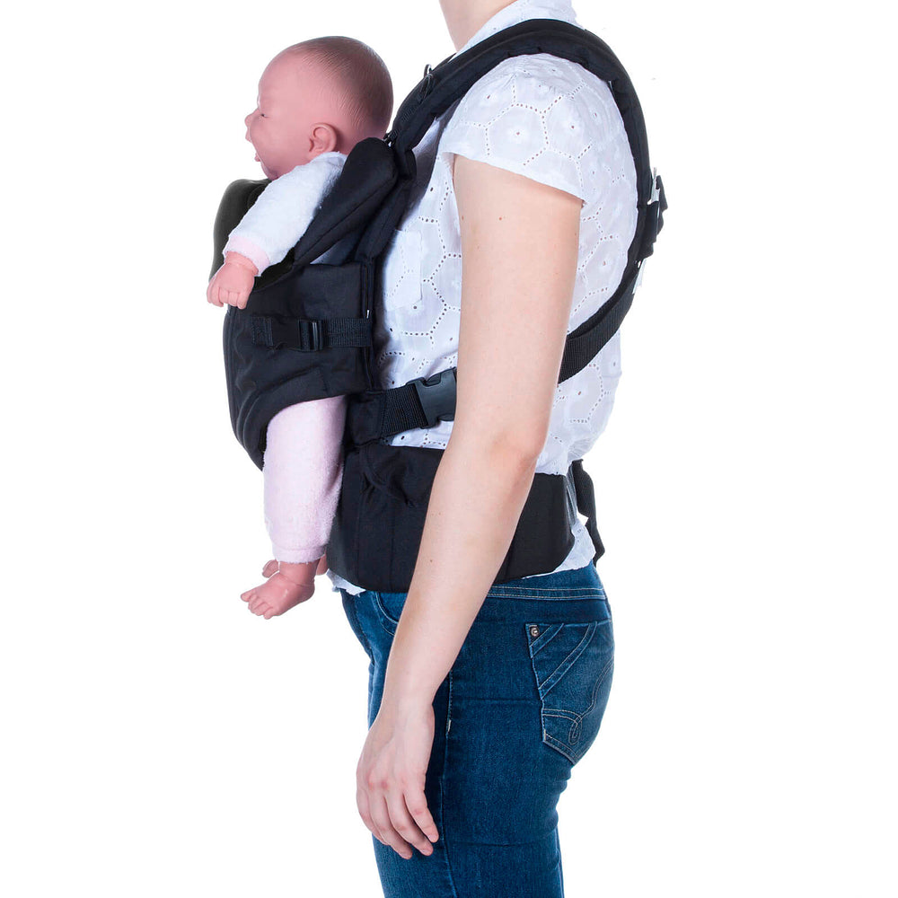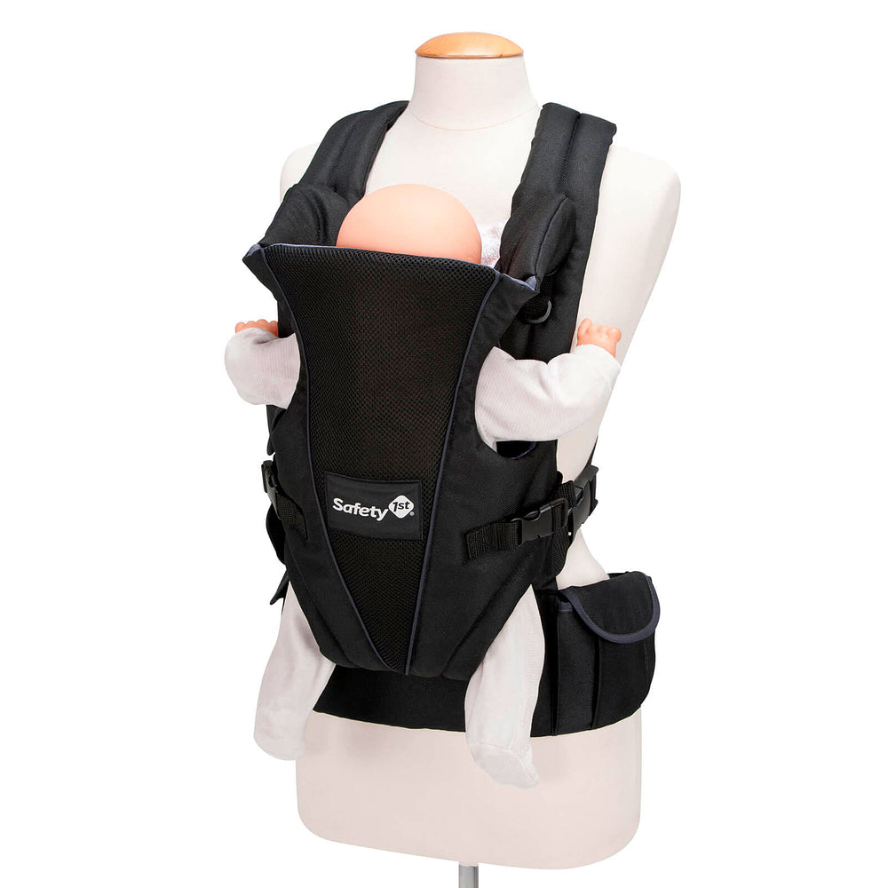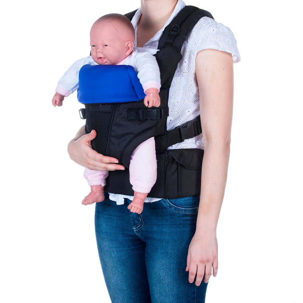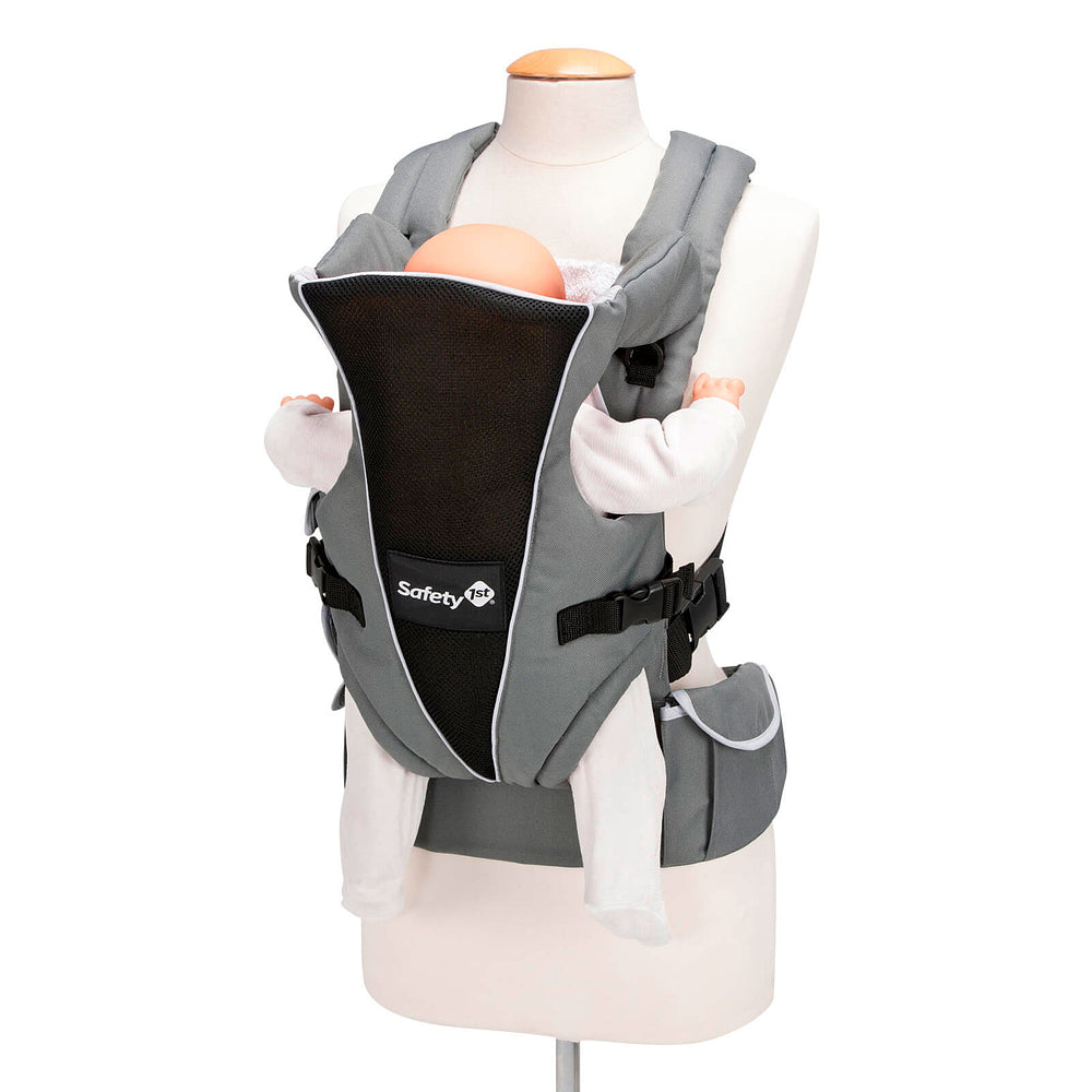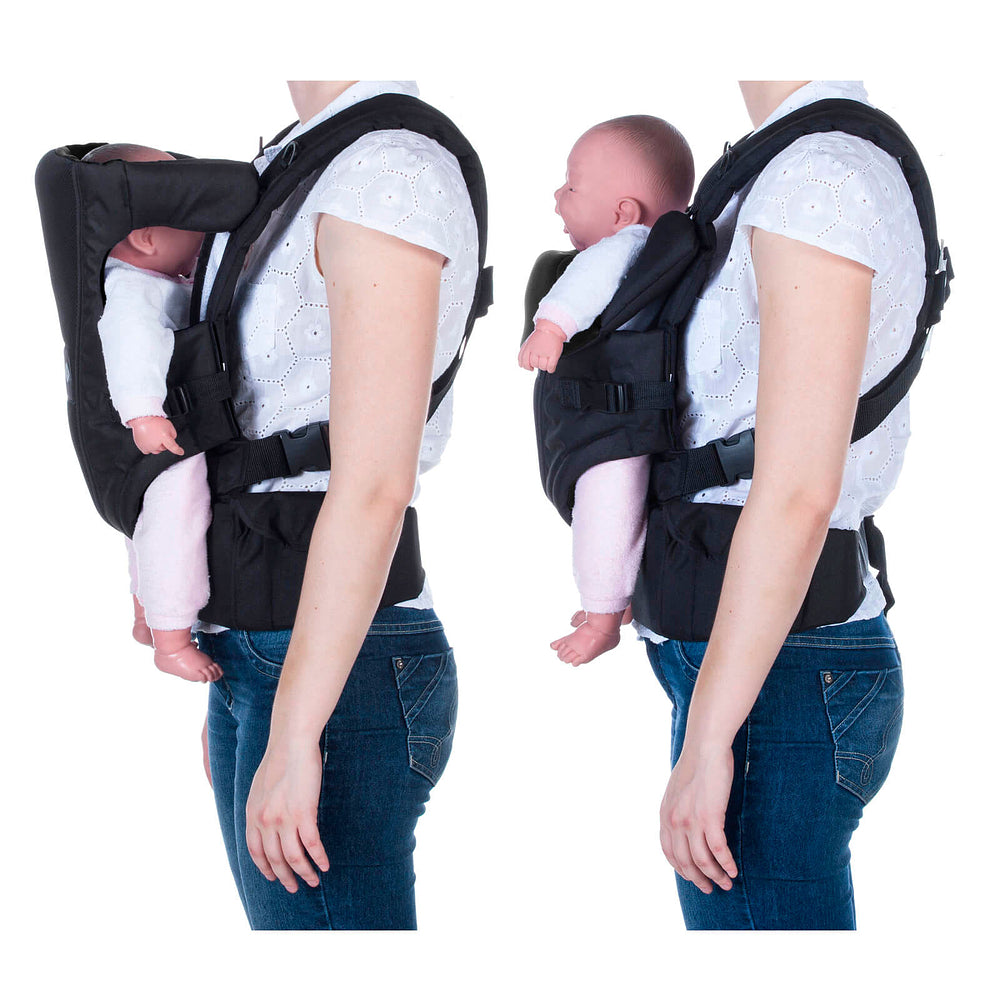 Fácil de usar:o bebê de frente para o mundo ou para os pais, alças em X e cinto abdominal que distribem o peso da criança pelo corpo. Proteção atoalhada, apoio para a cabeça regulável em 3 posições.
